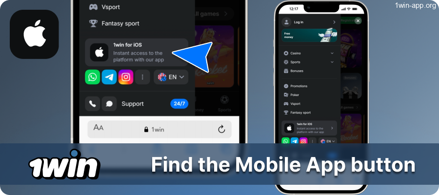 Find the Mobile App button or the Apple symbol that says Download for iOS.